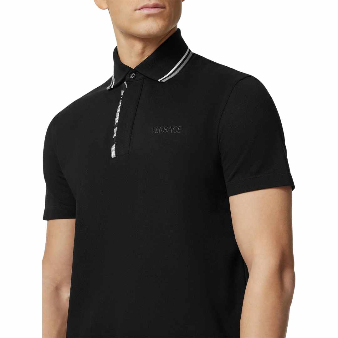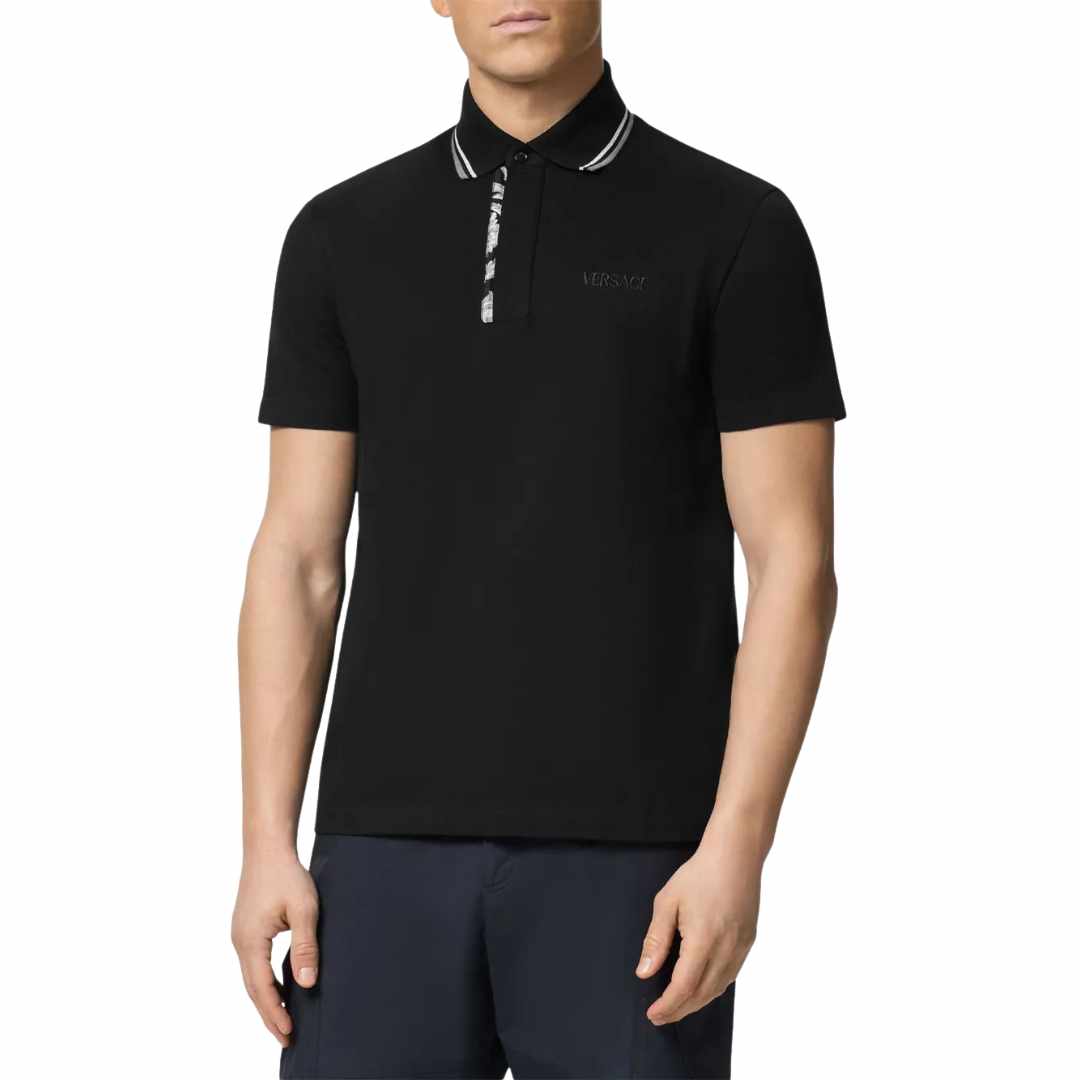 Barocco Print Black Polo-Shirt