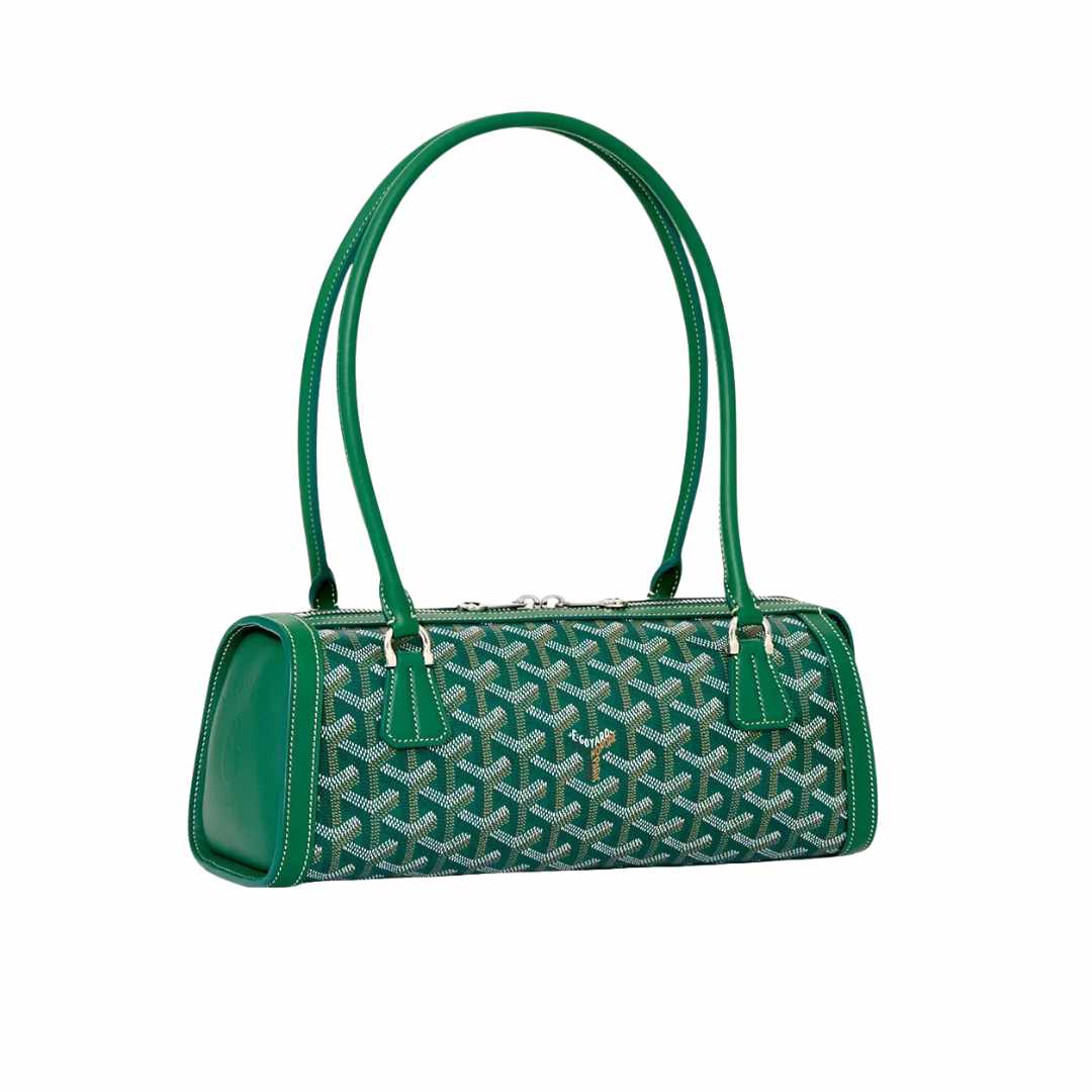 The Bonbonnière bag is at once understated and bold. Thanks to its striking "baguette" shape and elongated leather handles, it seamlessly transitions from handbag to shoulder bag, and can be styled either horizontally or vertically.