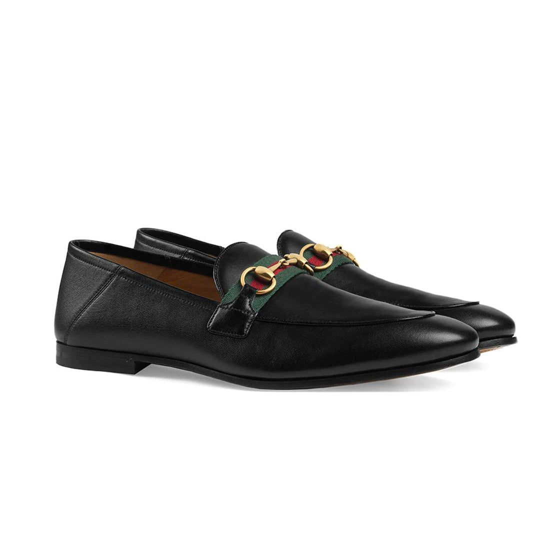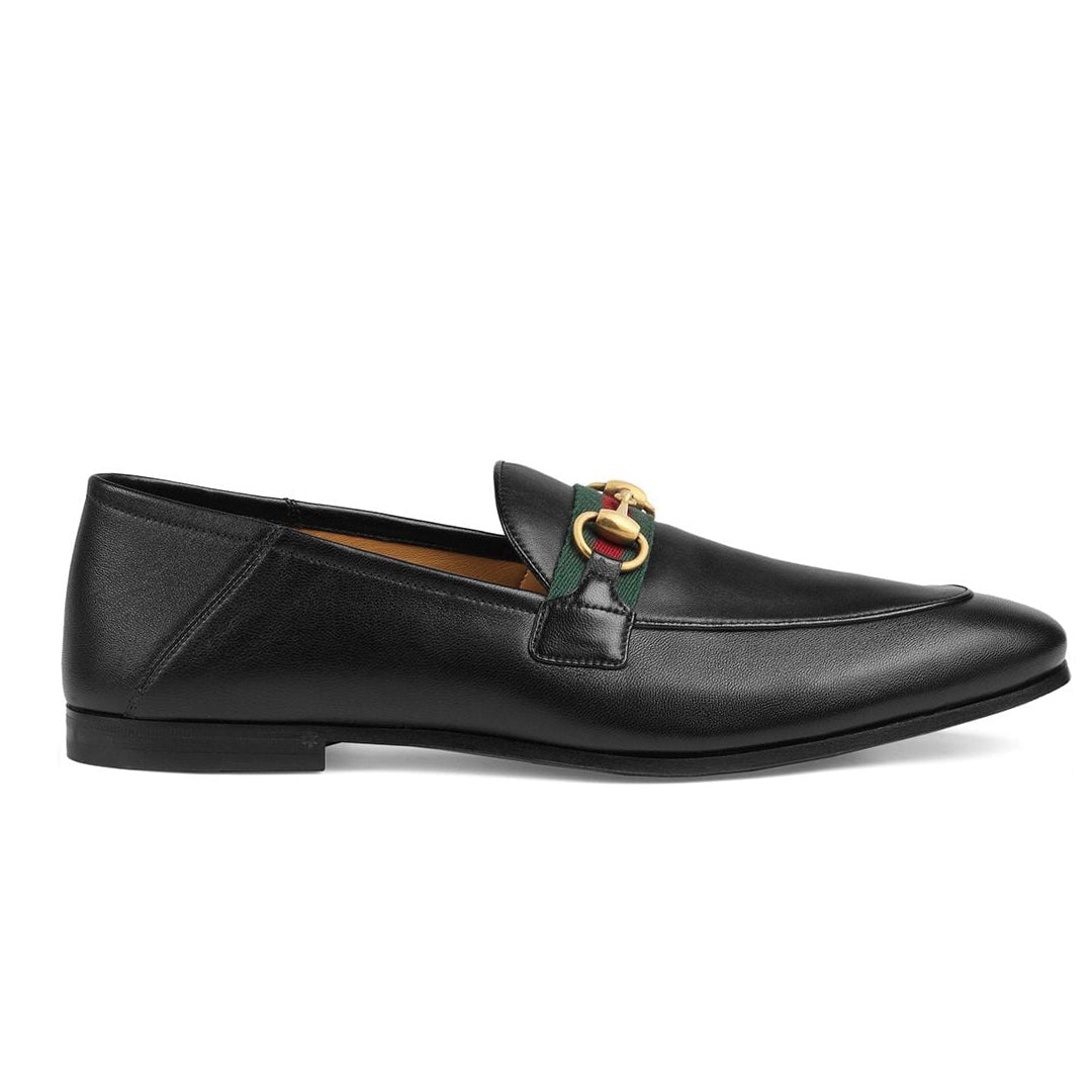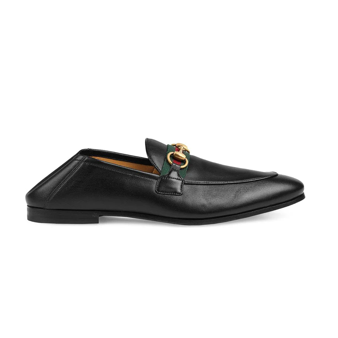 Brixton Webbing-Trimmed Collapsible Leather Black Loafers