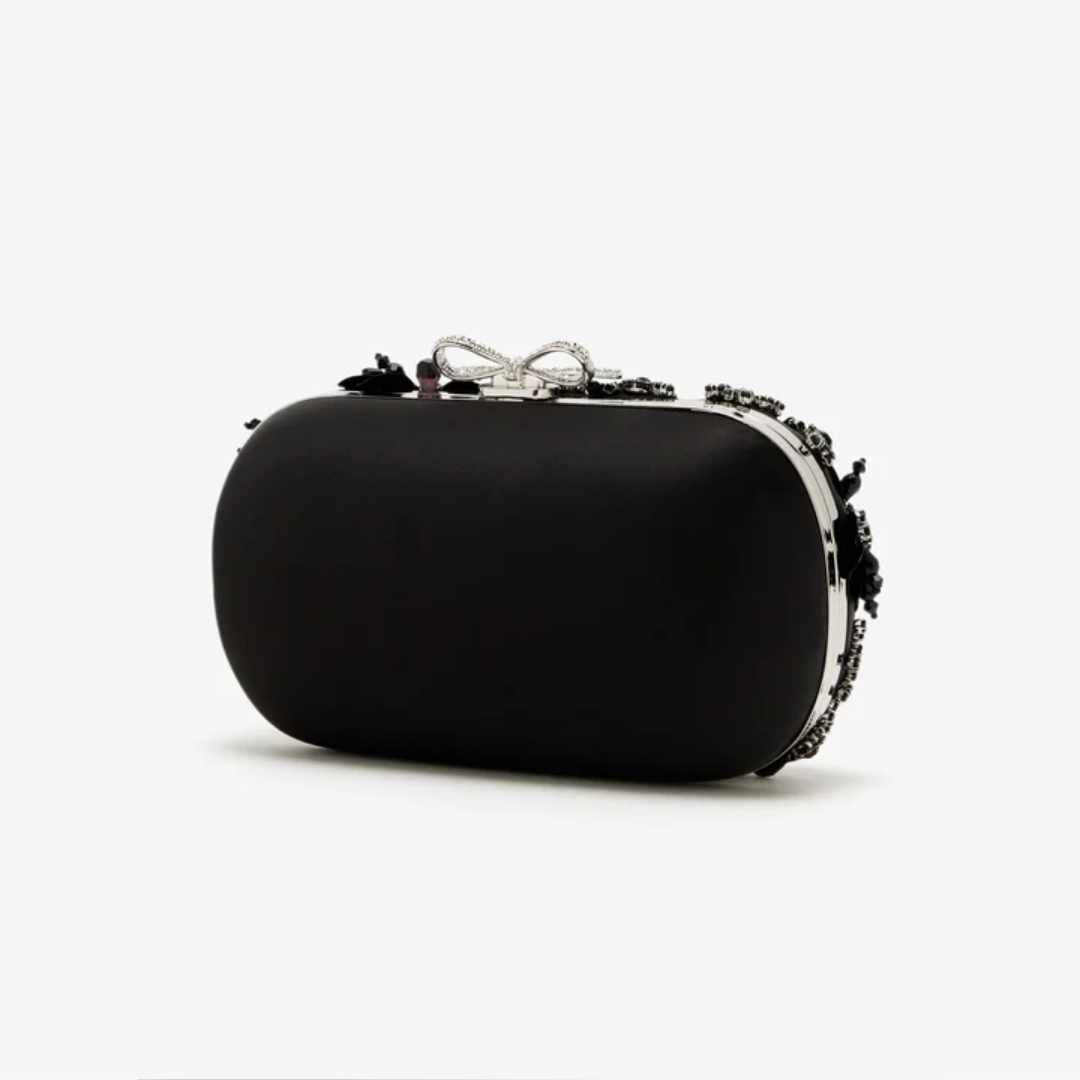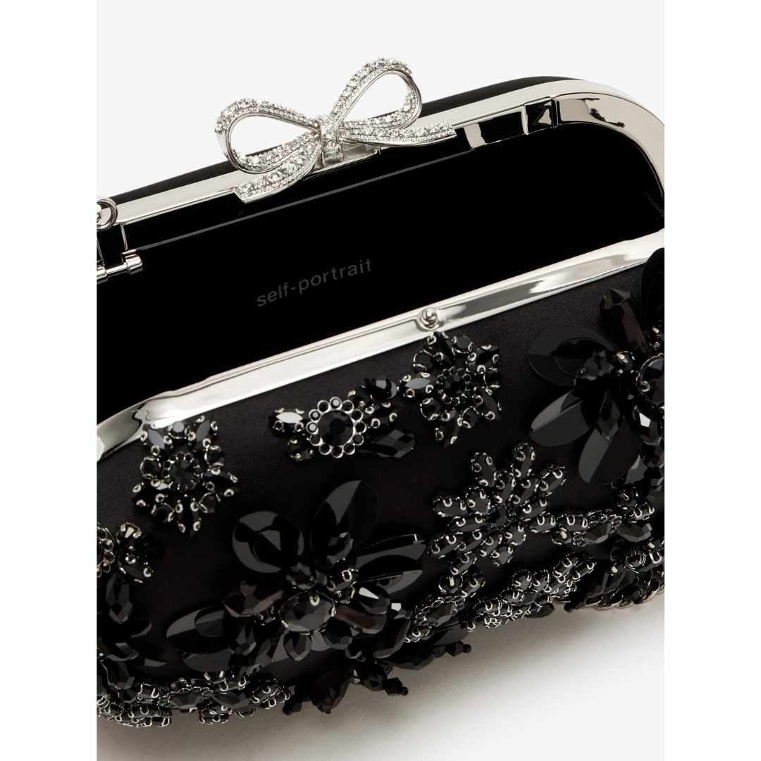 Floral Crystal Embellished Black Clutch Bag