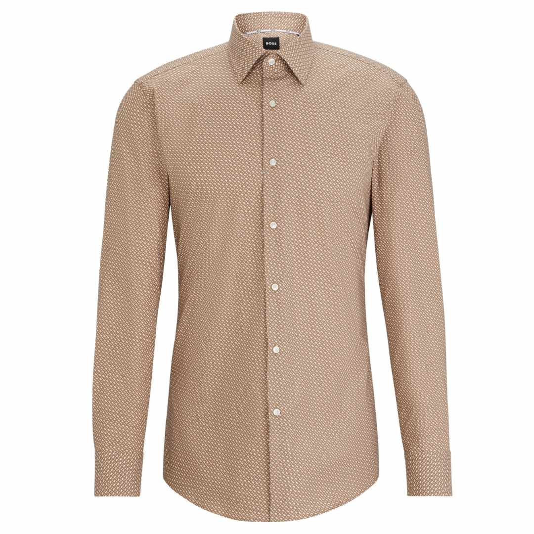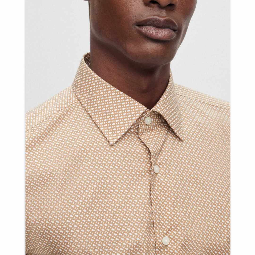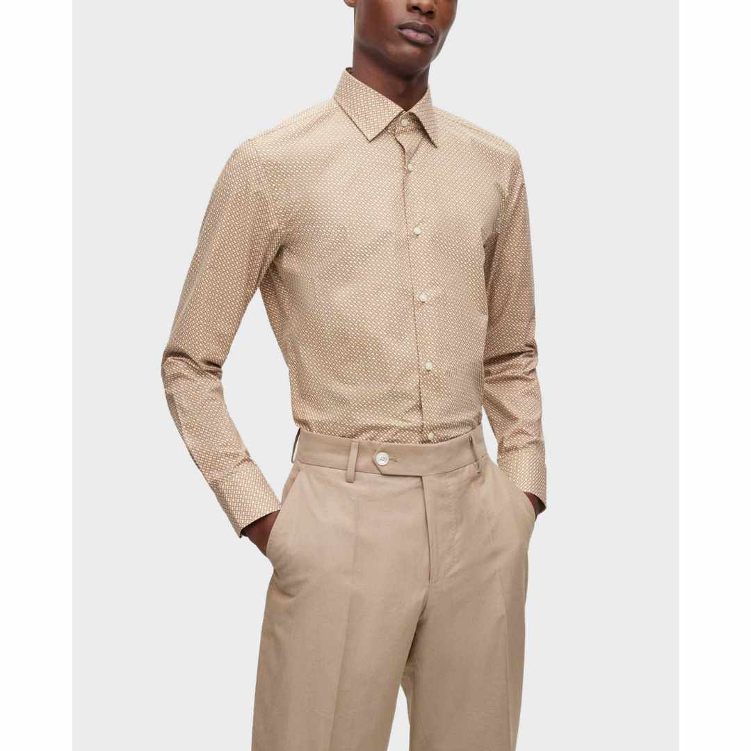 A modern shirt by BOSS that will refresh your current shirt rotation. In a dark blue colourway featuring an all over monogram print it is a contemporary design tailored to a streamlined fit. Crafted from a cotton-stretch blend it provides maximum comfort for all day wear.