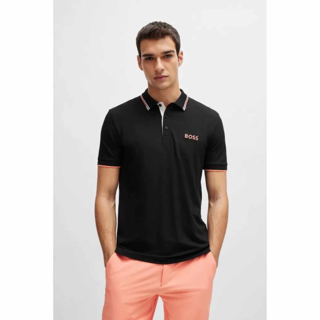 Paddy Pro Orange Embroidery Black Polo-Shirt