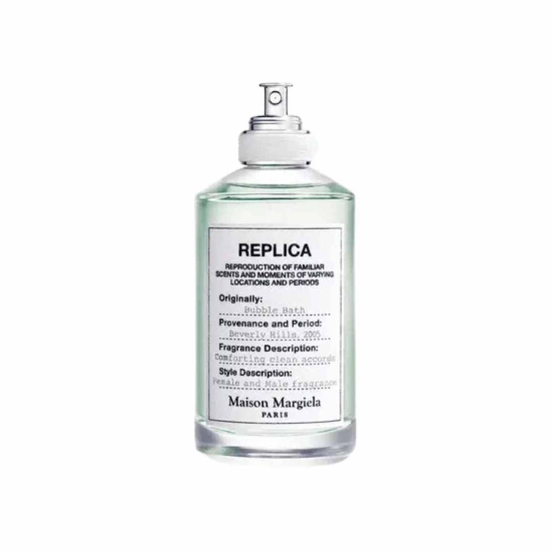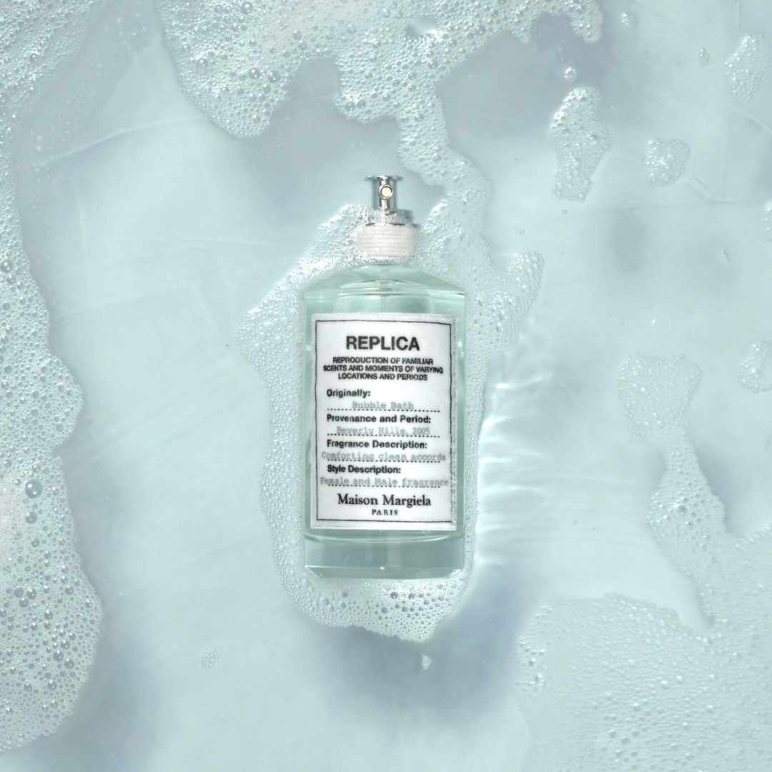 The relaxing memory of a me time moment in the bubbles of a hot scented bath. Sweet memories of relaxing moments enjoying a hot bubble bath. Slowly plunge yourself in the warm scented water and feel your body soothed from all tensions. Replica Bubble Bath by Maison Margiela makes you relive the exquisite “me time” of pure wellness. This clean & fresh eau de toilette captures the soothing sensation of a hot bath filled to the brim with fragrant soap bubbles.