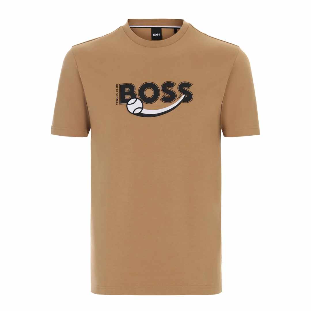 Tennis Club Logo Embroidered Brown T-Shirt
