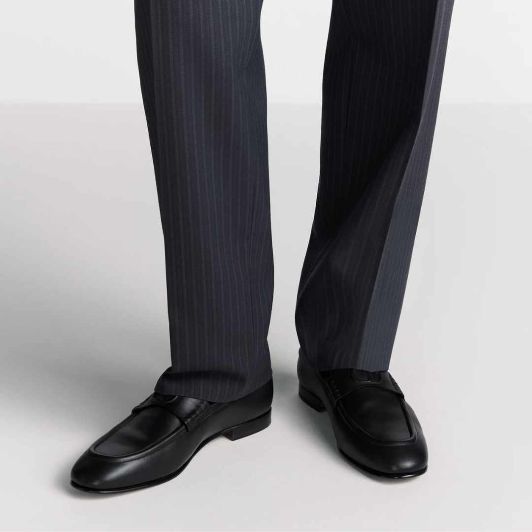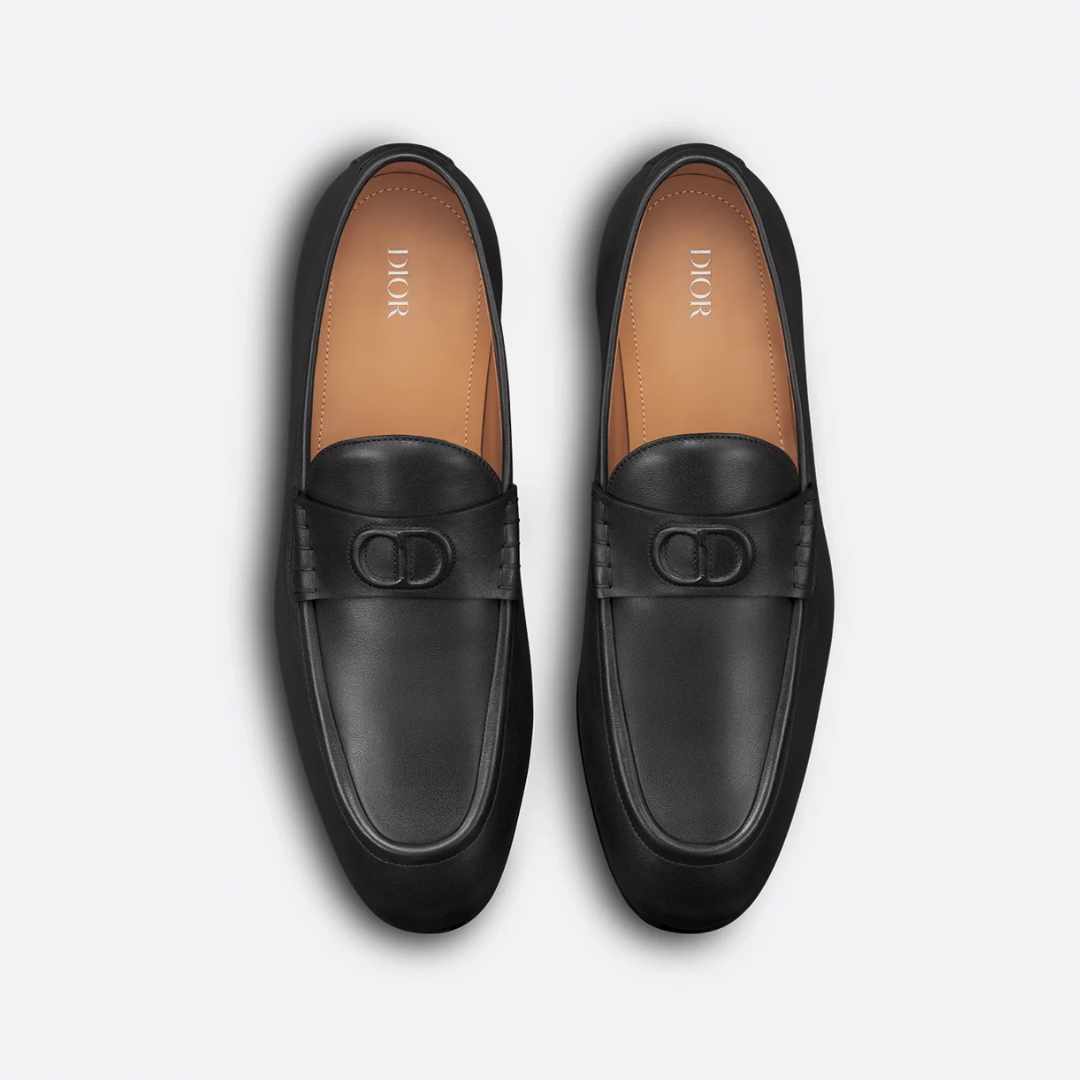 New for Summer 2025, the Dior Timeless Flex loafer reframes Dior's innovative codes of modern elegance. The black smooth calfskin upper is enhanced by a CD Icon signature embossed on the vamp, while topstitch detailing exemplifies House savoir-faire. Featuring a thin, exceptionally supple and flexible leather sole with a non-slip tread, the shoe offers a sophisticated look with ultimate comfort. The elegant loafer can be paired with refined looks.