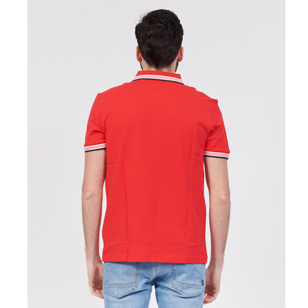 Logo Print Red Collar Red Polo-Shirt