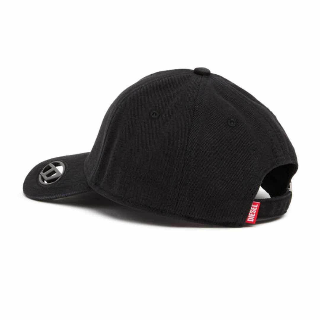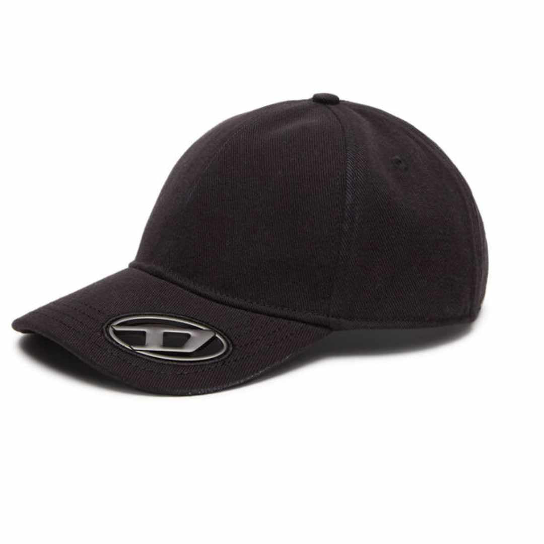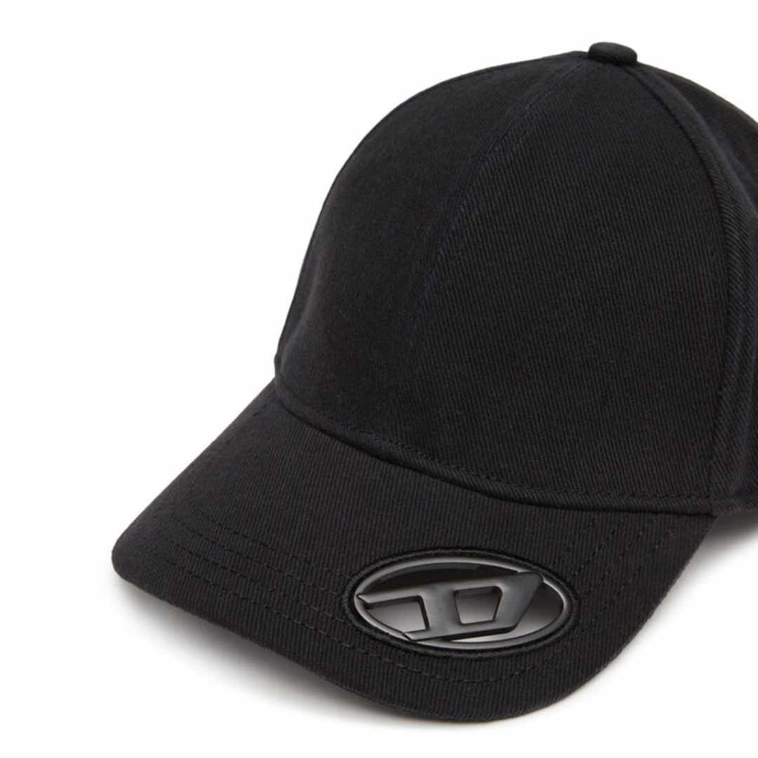Men's baseball cap built from heavy cotton twill with a washed finish. Updated with a metal oval D plaque embedded into the peak.