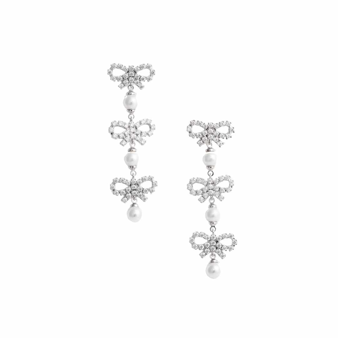 Crystal bows and shining pearls meet to dazzling effect in these tiered earrings. Use them to add feminine charm to your ensemble and style them with everything from crisp button-downs to a LBD.