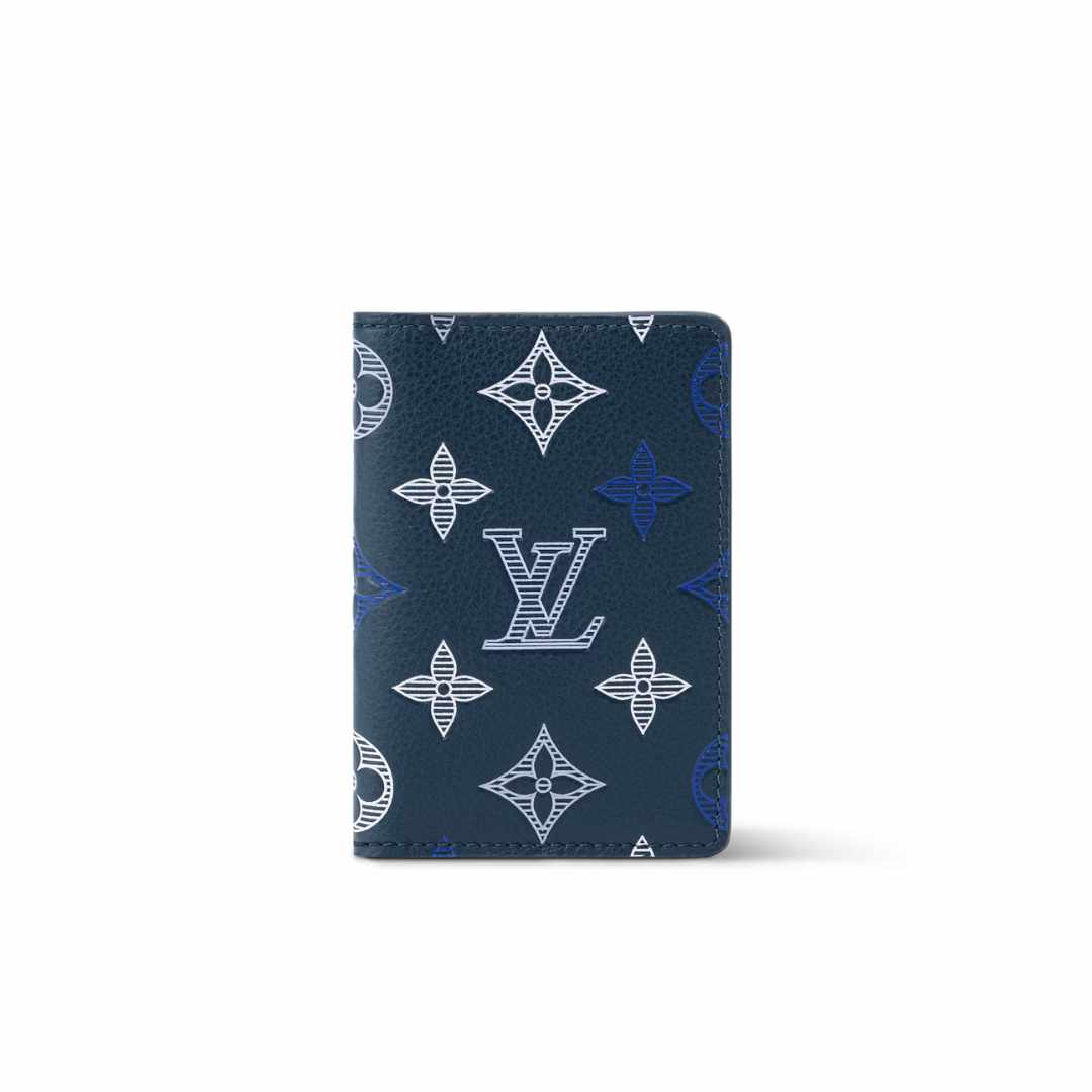 The Pocket Organizer compact wallet takes on a sporty feel in Monogram Shadow calfskin leather. The leather is embellished with a Monogram pattern featuring a gradient effect, created through a triple serigraphy technique. This pocket sized wallet is lined in cowhide leather and features three card slots, five inside pockets, and an outside pocket on the back.
