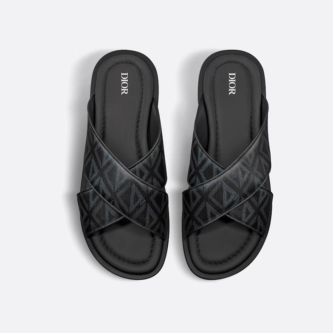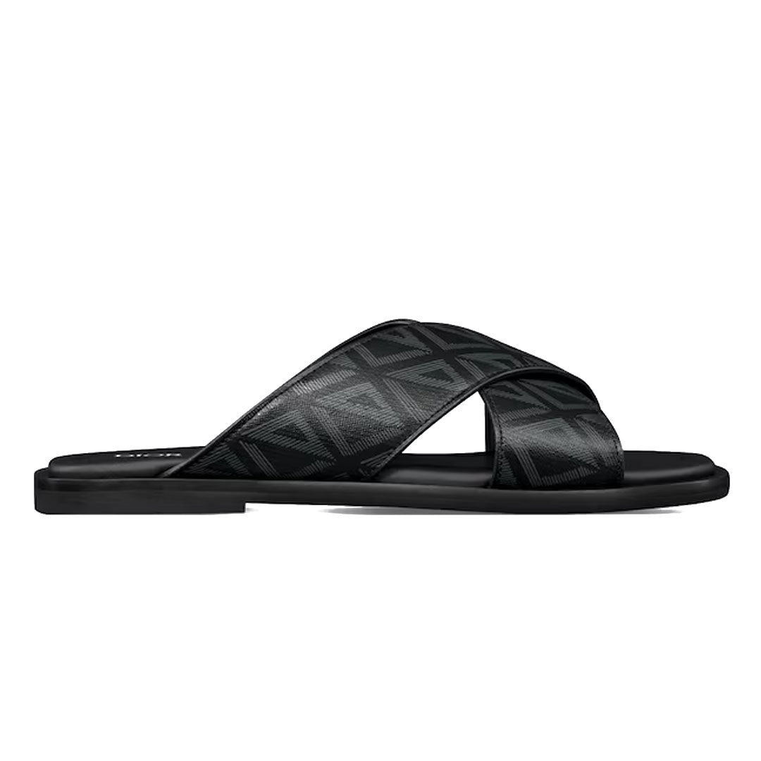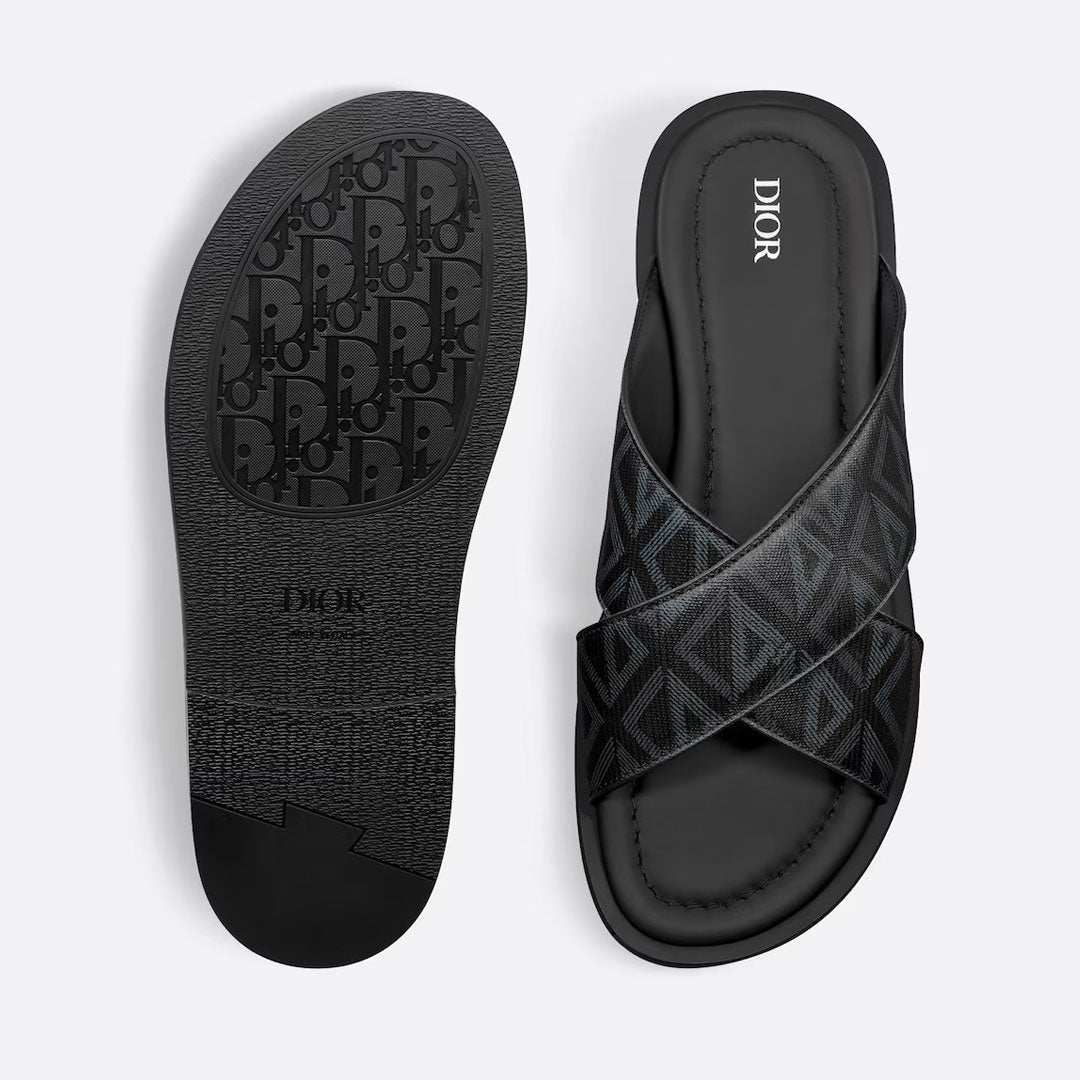 The Dior Alias sandal is a laid-back yet refined creation. Crafted in black CD Diamond canvas inspired by House archives, the style features a cross-strap design. Completed by a leather and rubber sole for optimal comfort and enhanced by a Dior Oblique anti-slip insert, the sandal will elevate any casual look from the season.