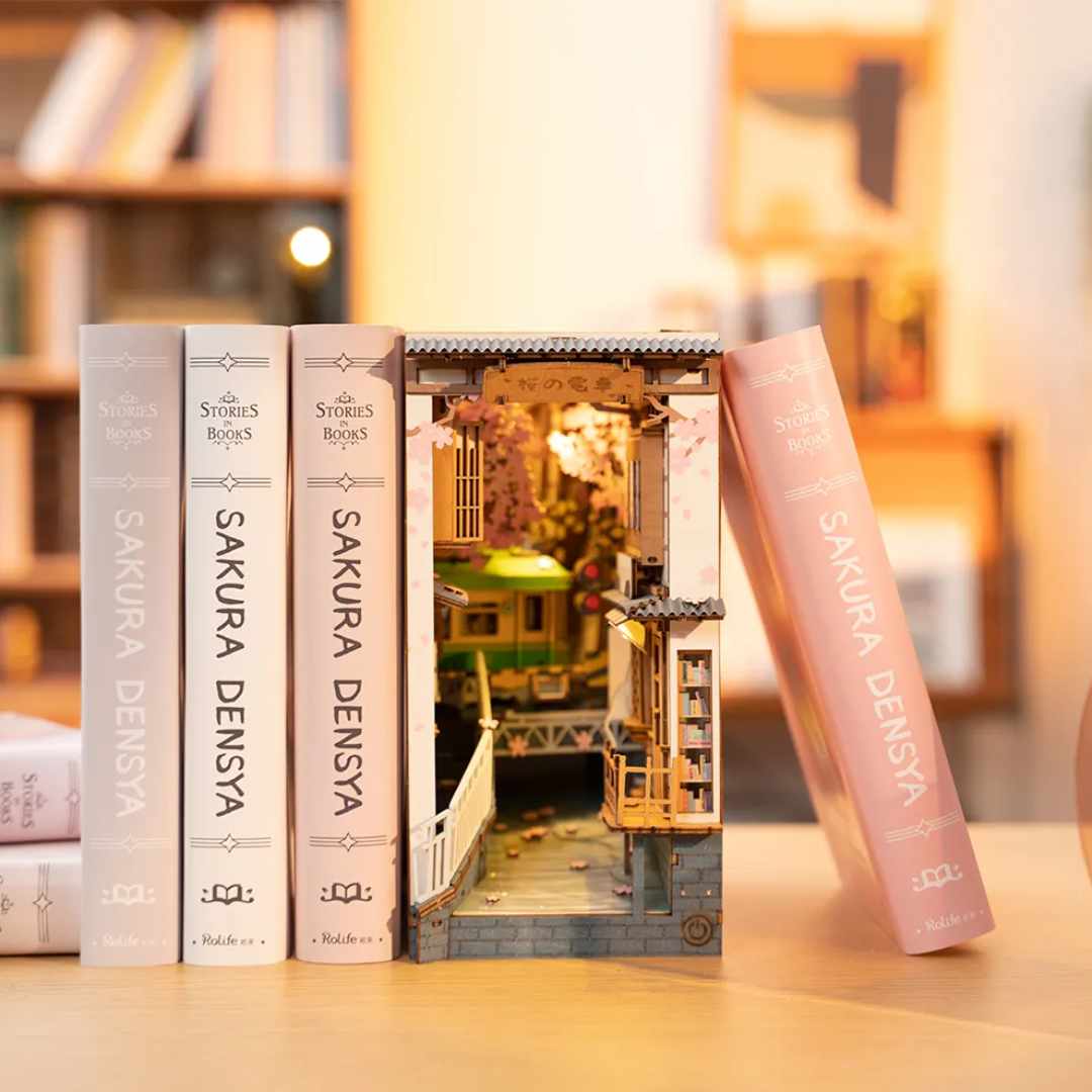 This Rolife Sakura Densya Book Nook TGB01 is a DIY bookshelf decoration in form of a miniature house. After you finish building this artwork, it will show you an amazing scene of Tokyo streets in Spring and will definitely make you and your guests impressed. With the LED lights on, your bookshelf will look even more amazing