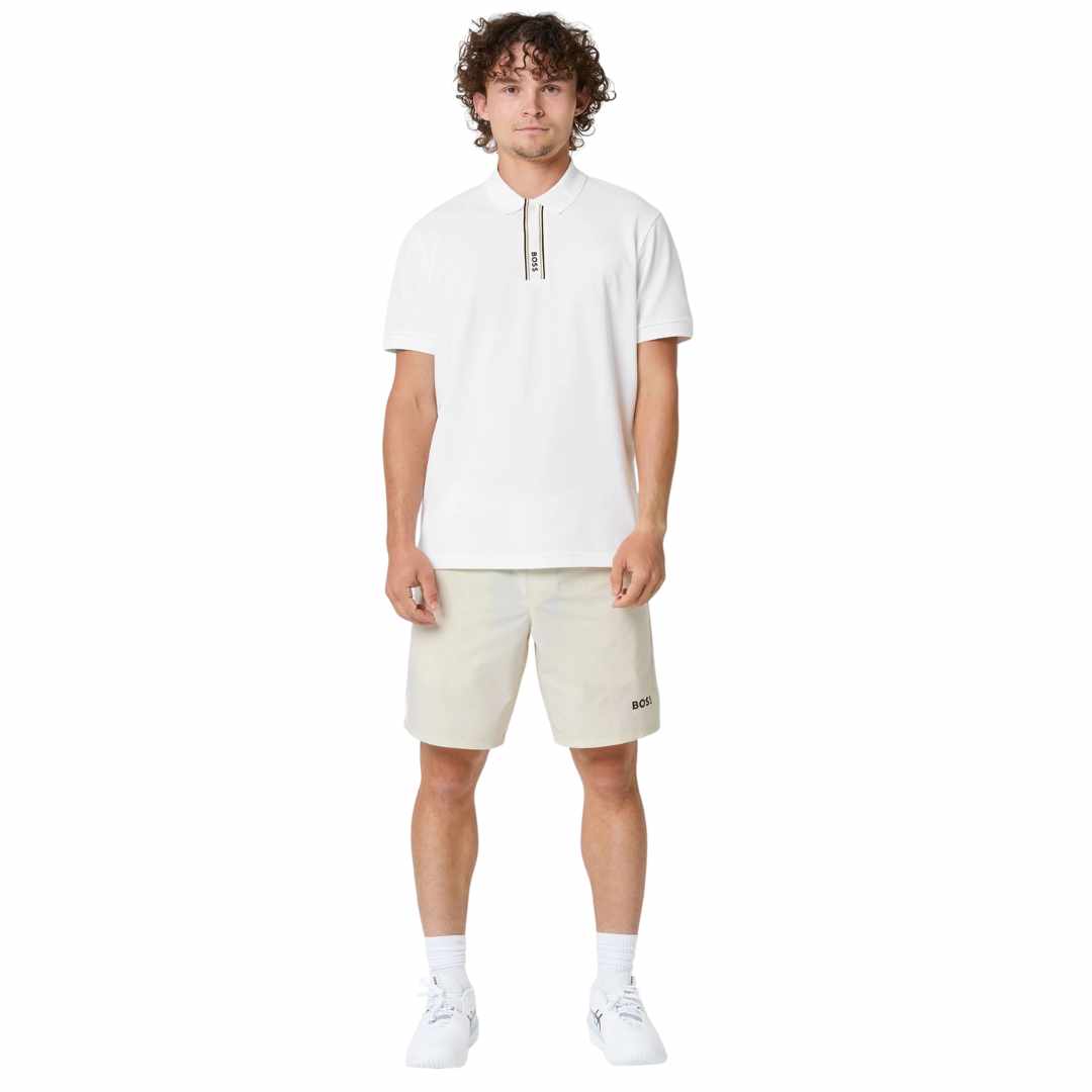 Striped Placket White Polo-Shirt