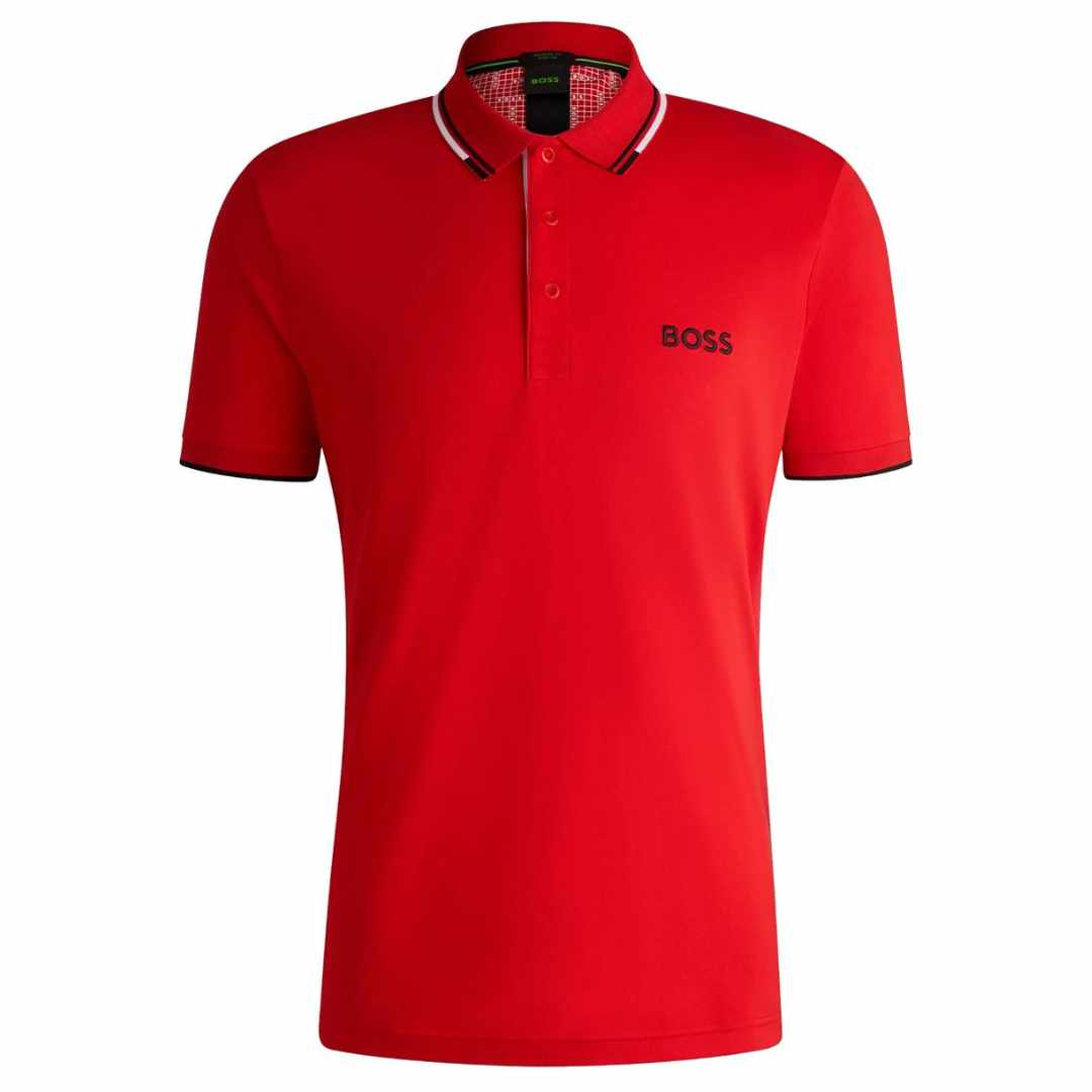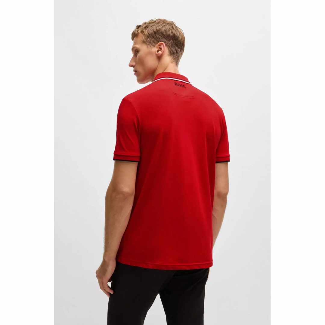 White Striped Collar Red Polo-Shirt